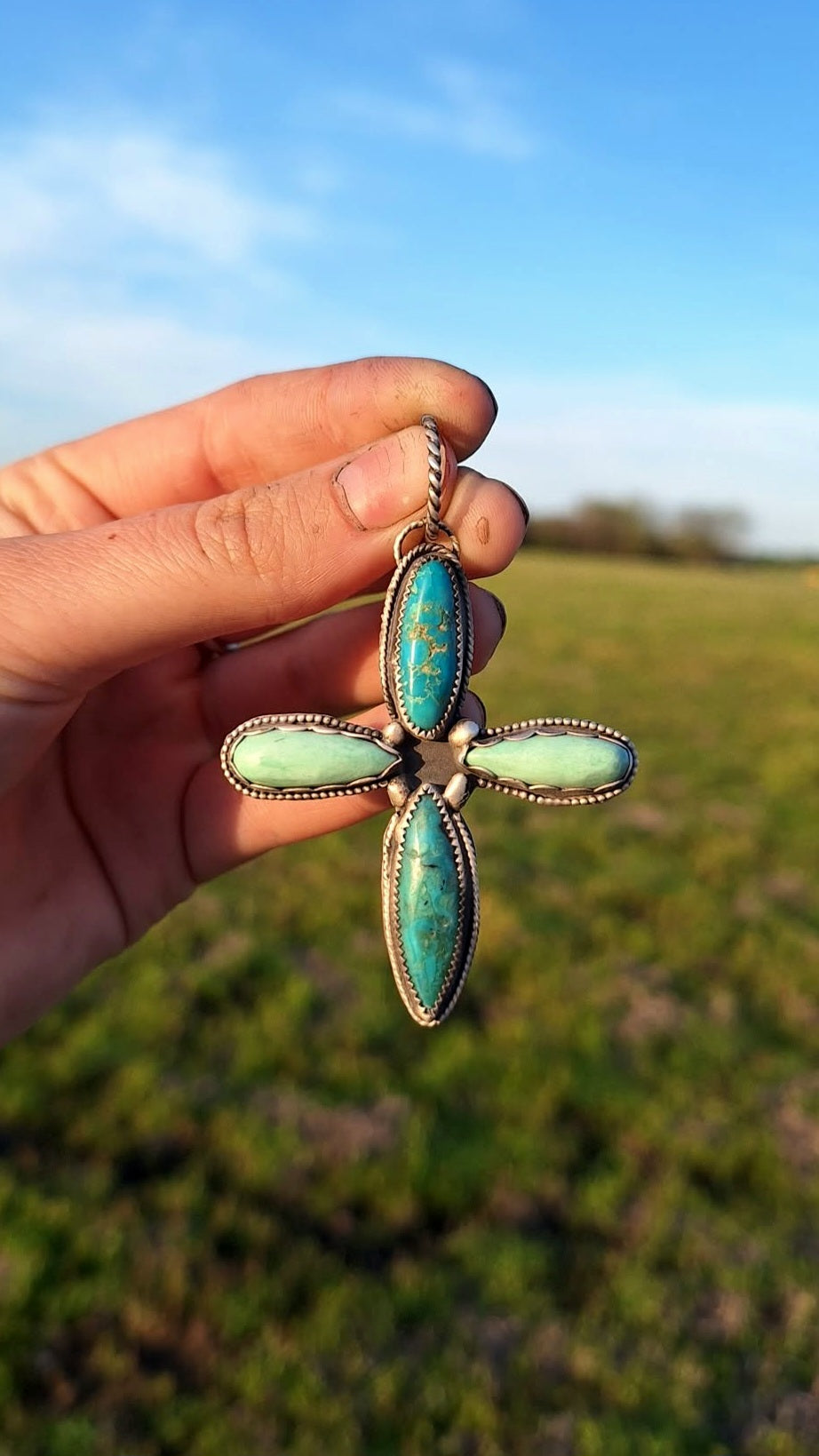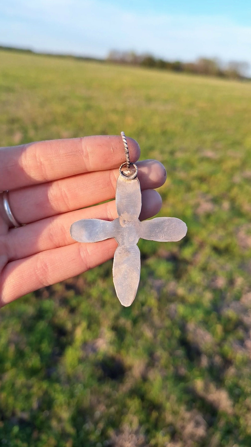 Gorgeous cross pendant. Will fit at least 12mm pearls. Sterling and fine silver hardware. 3" long including bail!