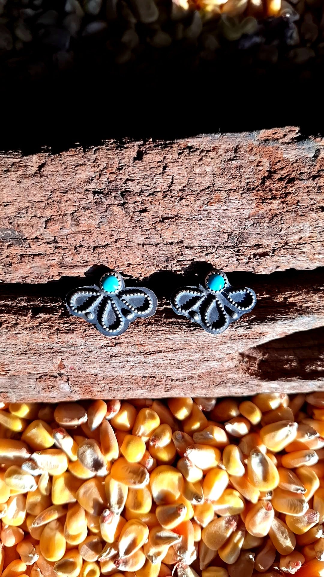 The Leona studs are perfect for everyday wear, Sterling silver and Lone mountain turquoise. Stamped .925, post behind turquoise stone.